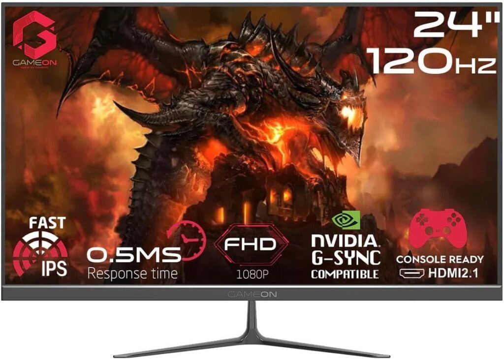 2-شاشة العاب جيميون GOES24FHD120IPS من سلسلة اسينشيال، شاشة العاب سوداء 24انش، لوحة IPS FHD 1920×1080p، معدل تحديث 120Hzشاشة قيمنق 24 انش تعتبر الحجم المثالي لكثير من اللاعبين، خصوصاً اللي يلعبون على مكتب صغير أو يفضلون المسافة القريبة. تعطيك رؤية واضحة بدون ما تضطر تحرك راسك كثير. وهذا يخليها خيار ممتاز للألعاب التنافسية.