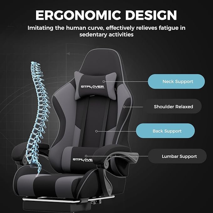 كرسي العاب من جي تي بلاير، كرسي كمبيوتر مع مسند للقدمين ودعم للفقرات القطنية، كرسي ألعاب بارتفاع قابل للتعديل مع مقعد دوار 360 درجة ومسند رأس للمكتب أو الألعاب.