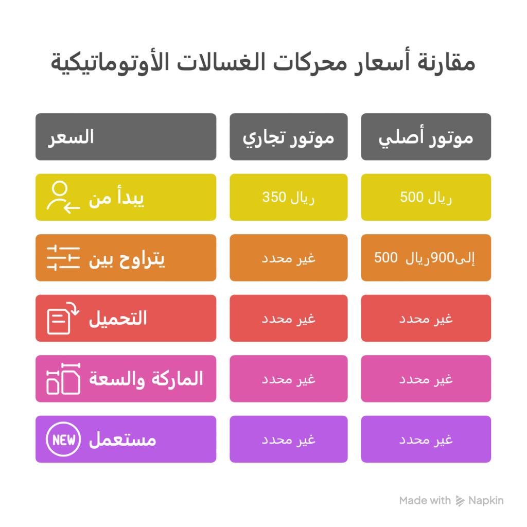 - سعر موتور غسالة اتوماتيك التجاري يبدأ غالبًا من 350 ريال